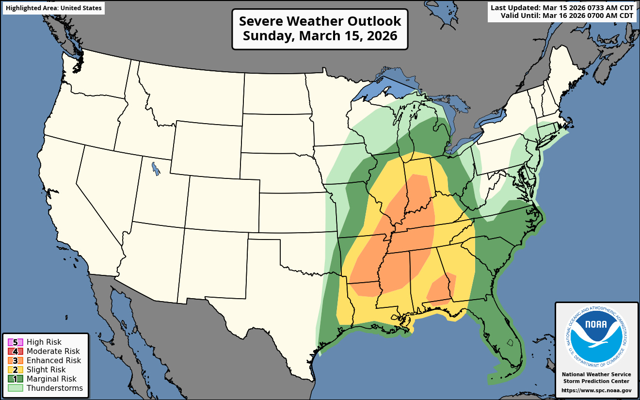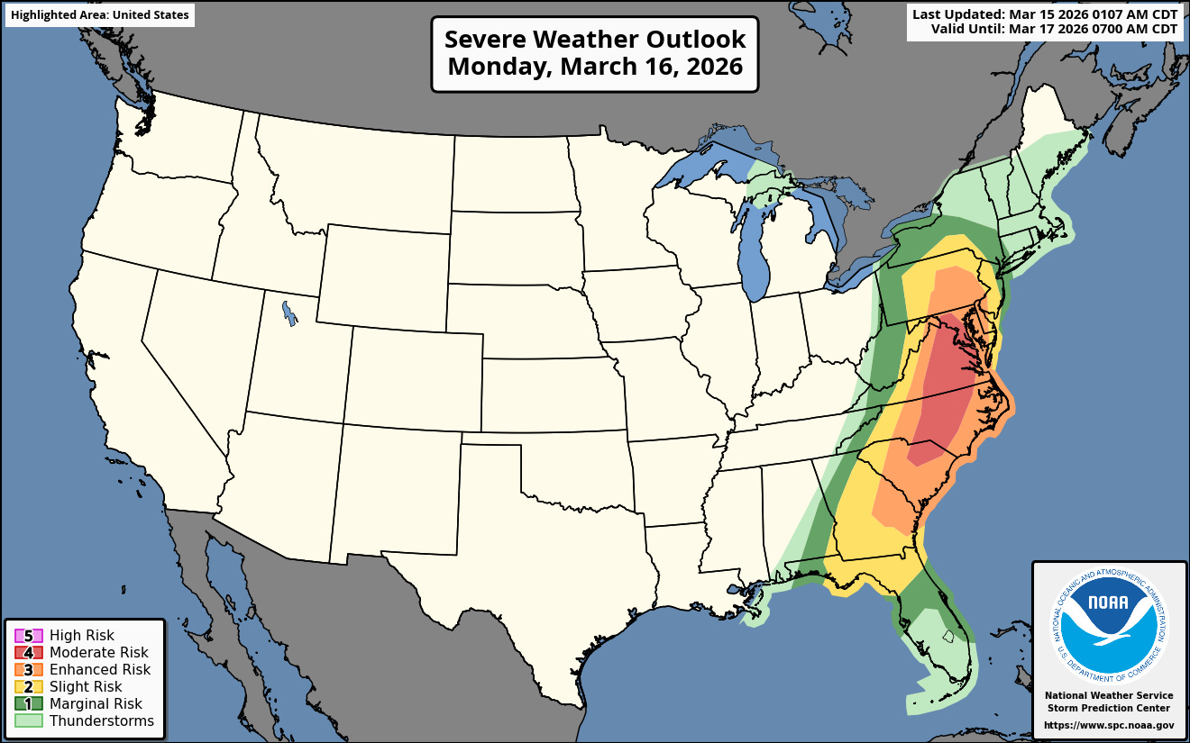 On top of all that, there is a level 3 Enhanced risk of severe thunderstorms and tornadoes today and a fairly rare Day 2 level 4 risk tomorrow ahead of this strong cyclone/cold front as shown by the categorical outlooks for today and Monday.
