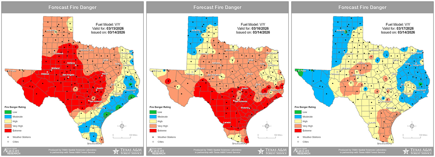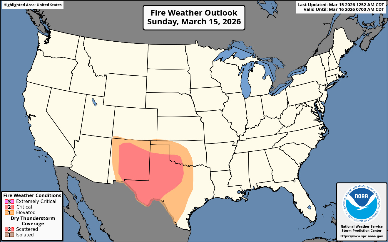 The high winds are contributing to whiteout conditions due to snow and blowing snow in the blizzard warned area and to extreme fire danger over West Texas and New Mexico.